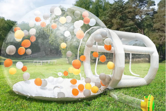 Цветна балонена къща, пълна с усмивки, игри и перфектни снимки за всеки детски празник.