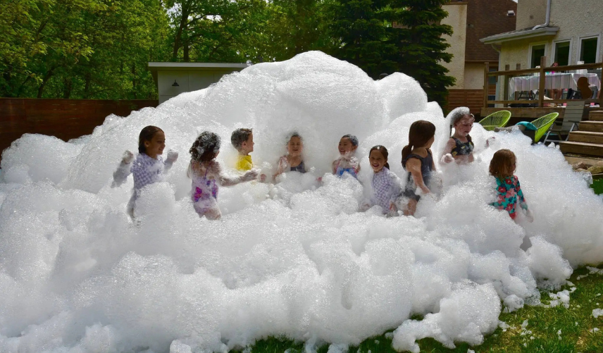 Пяната е хипоалергична и безопасна, а децата могат да се радват на игри, танци и щури приключения сред меката и ефирна пяна.
